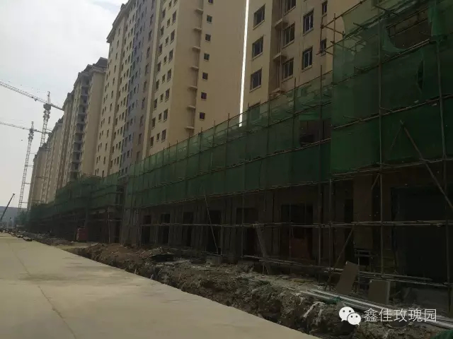 2、外墻:外墻干掛大理石1、6、10及西大門完成70%,外墻真石漆完成50%。