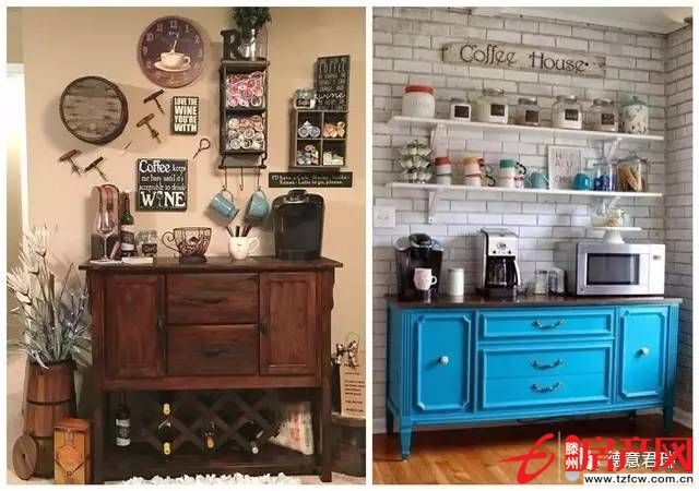 矮柜做餐邊柜時,不僅可以擺放餐具等做收納用途,還可以自制咖啡角,不進入廚房也能休閑喝下午茶。