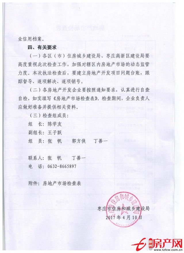 根據棗莊市住房和城鄉建設局《關于開展2017年第一季度房地產市場執法檢查的通知》精神,現將有關事項明確如下: