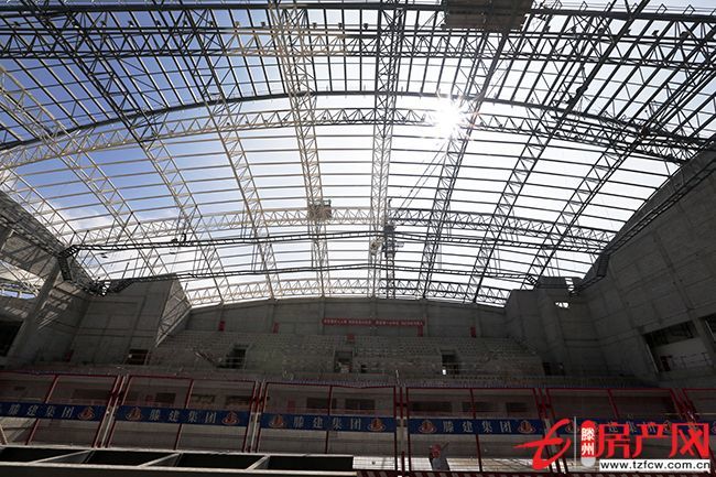 在全民健身中心游泳館項目建設現場,車輛穿梭、機聲隆隆,建筑工人揮汗如雨,在工地上搶時間、爭進度,保質保量推進工程建設?!澳壳埃摴こ讨黧w已施工完成,正在進行鋼結構屋架防火涂料及面漆涂刷,幕墻屋面施工已全面展開,各安裝工程有序進行?!痹摴こ炭偙O代表王其軍介紹到。