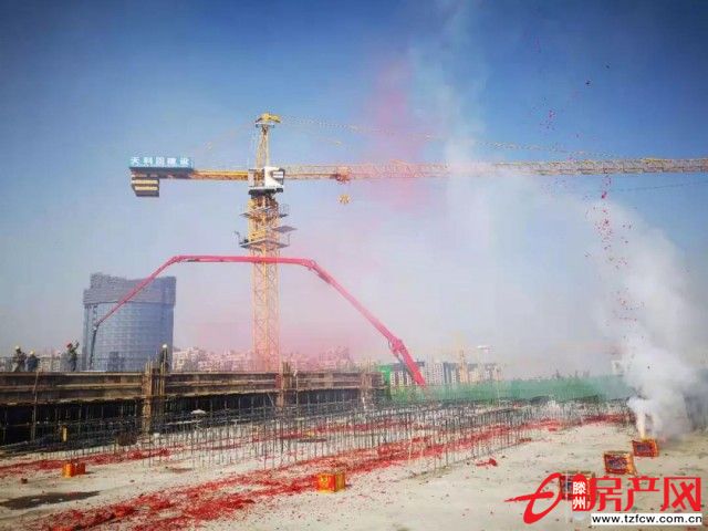 11月11日,滕州的初冬晴空萬里,風和日麗。君瑞城購物中心施工現場各項工作有條不紊。11時11分,伴隨著鞭炮鳴響、煙花綻放,混凝土泵車澆筑君瑞城三期最后一施工區塊,標志著君瑞城購物中心全面封頂!