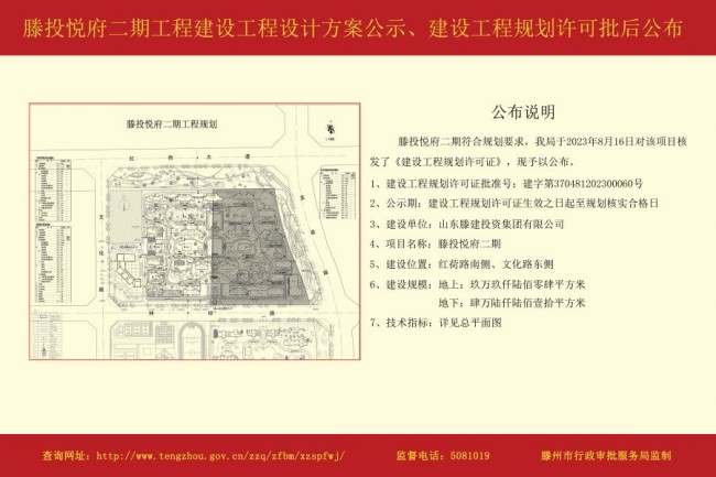 滕投悅府二期建設工程設計方案公示、建設工程規劃許可批后公布