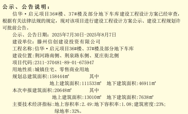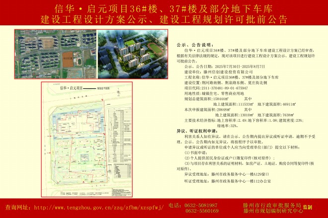 信華·啟元項目36#樓、37#樓及部分地下不庫建設工程設計方案公示、建設工程規劃許可批前公告