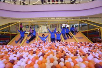 100萬個海洋球平鋪開,面積約占地10畝,可鋪滿一個奧體足球場;100萬個海洋球連起來長度約80000米,可繞滕州古城8圈;100萬海洋球可裝滿10輛公交車;有沒有一種不明覺厲的感腳!